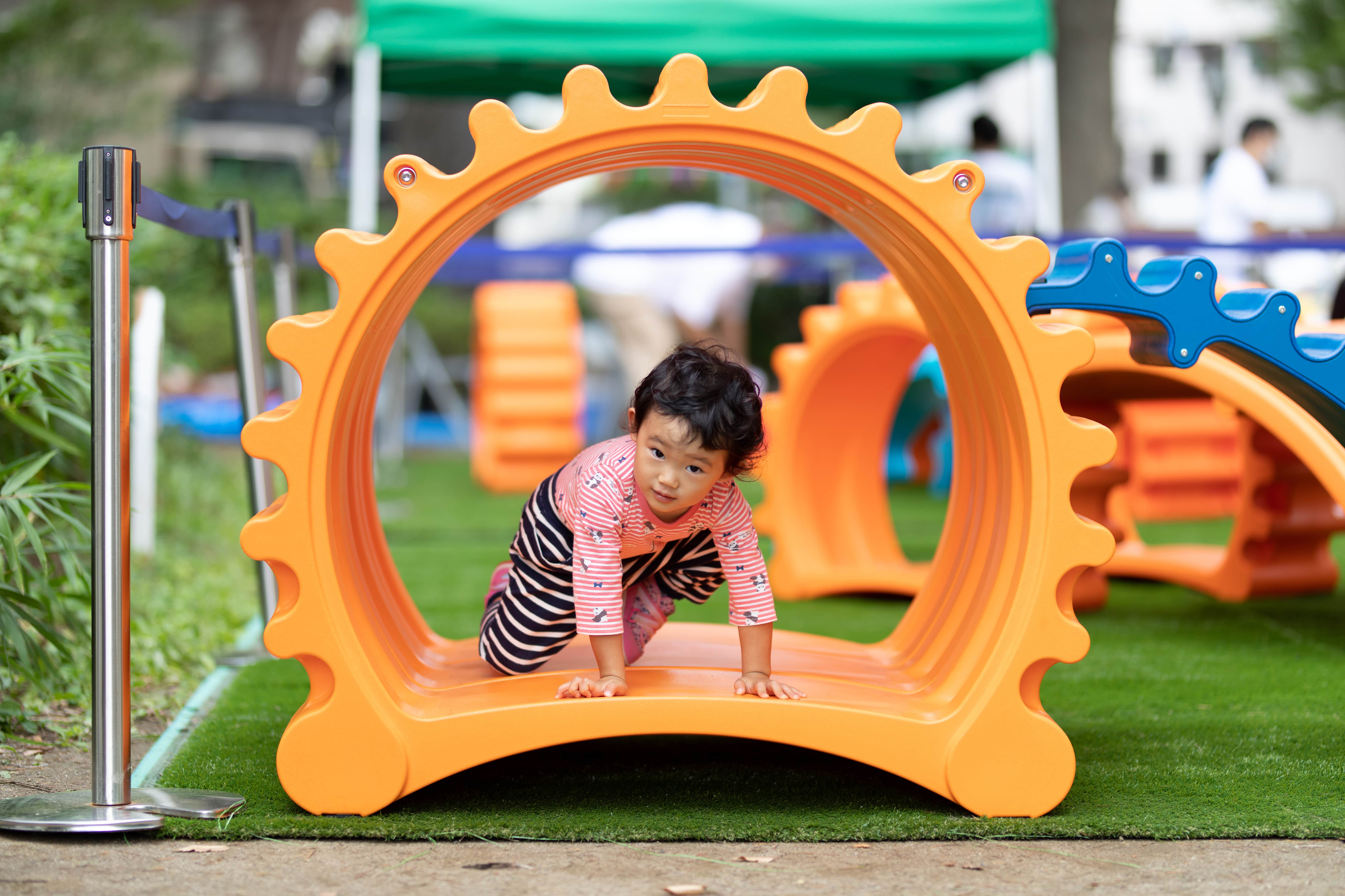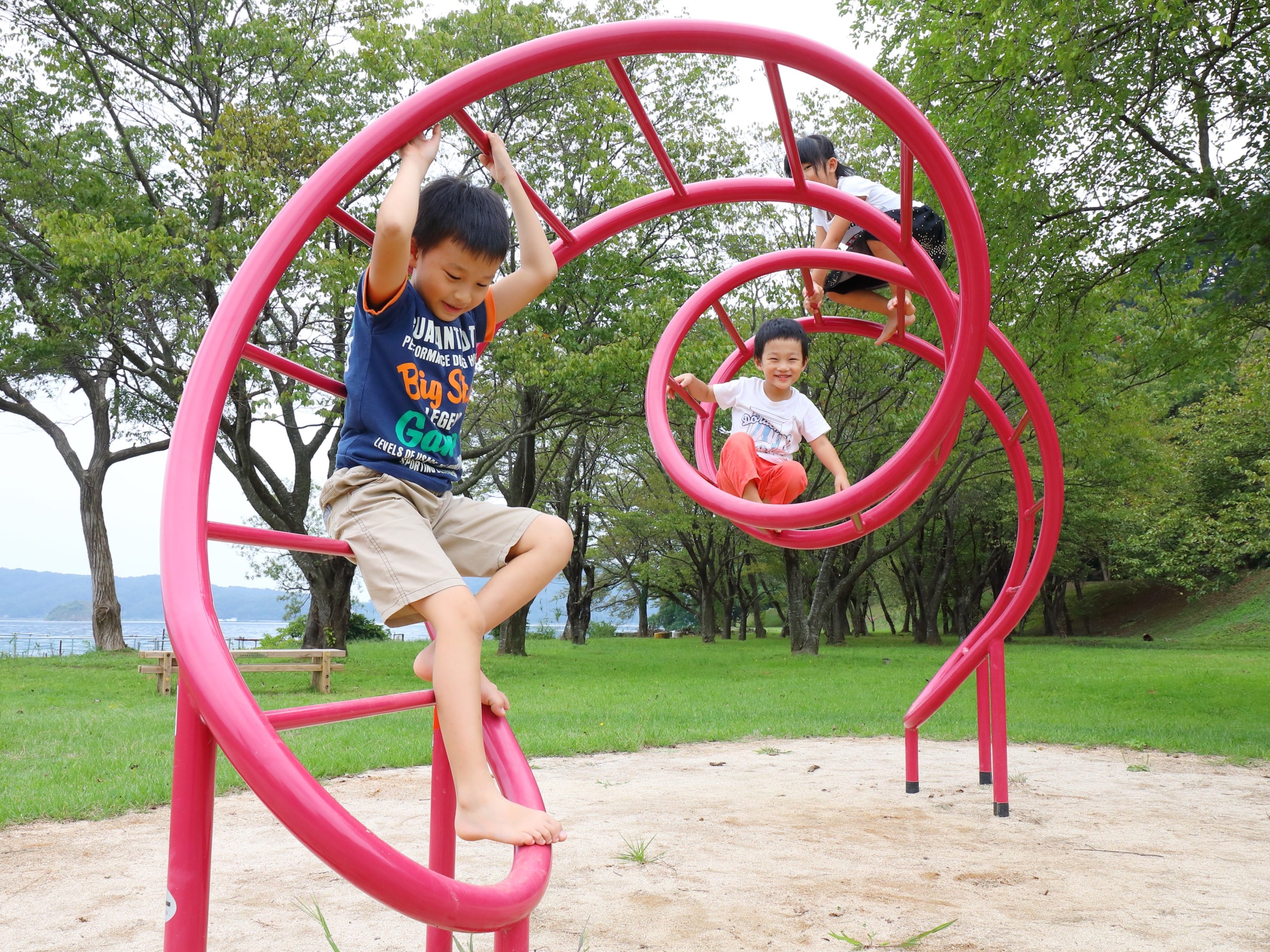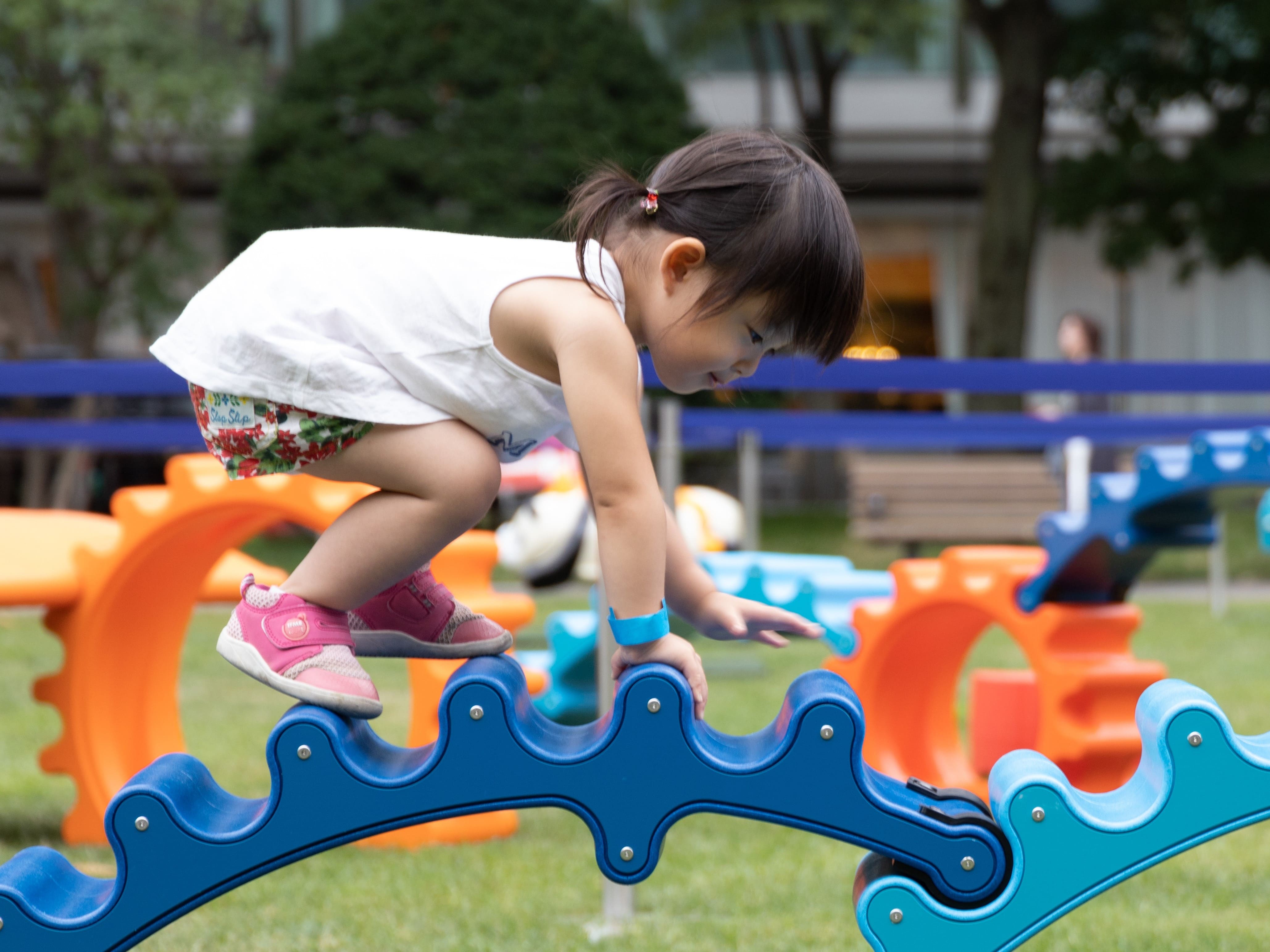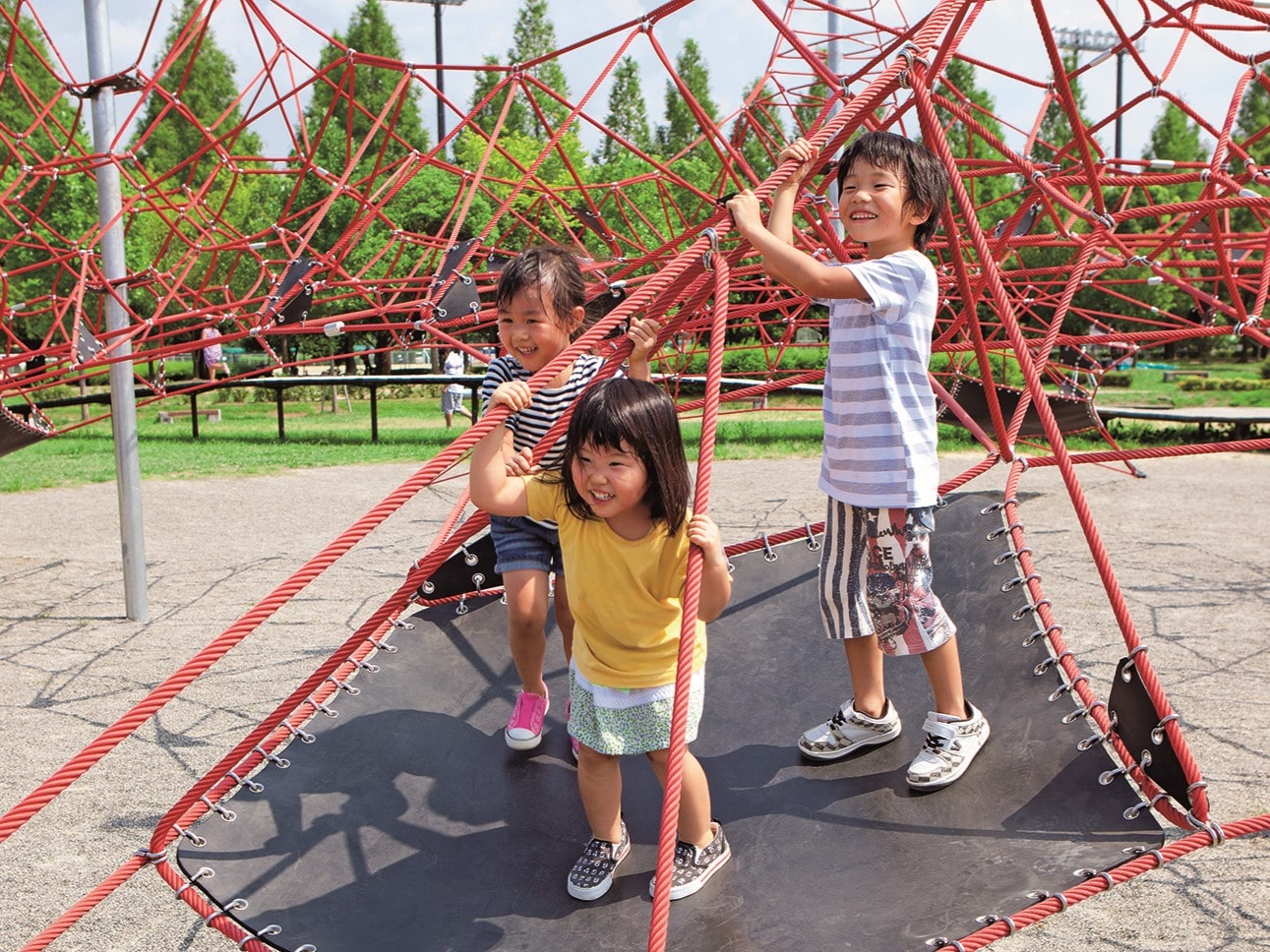 1つの遊具の中で難易度の違う遊びを選んで遊んでいる周囲を見て、できるようになりたい・面白いと「思う」ココロを育む。大勢でいっしょに遊ぶことができるので自然とコミュニケーションが生まれます。