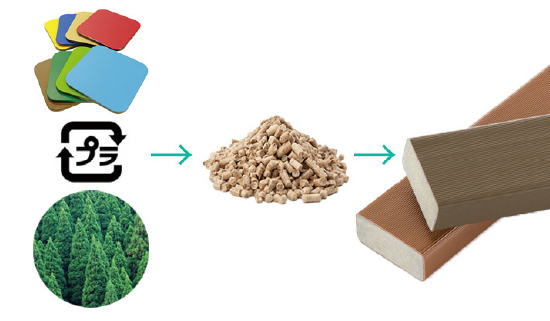 様々な素材を再生した木材など、環境に優しくありながら公共製品に適した耐久性と耐候性に優れた素材の開発。