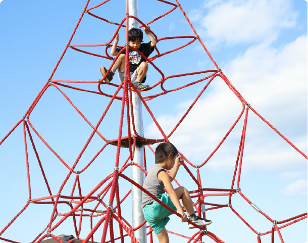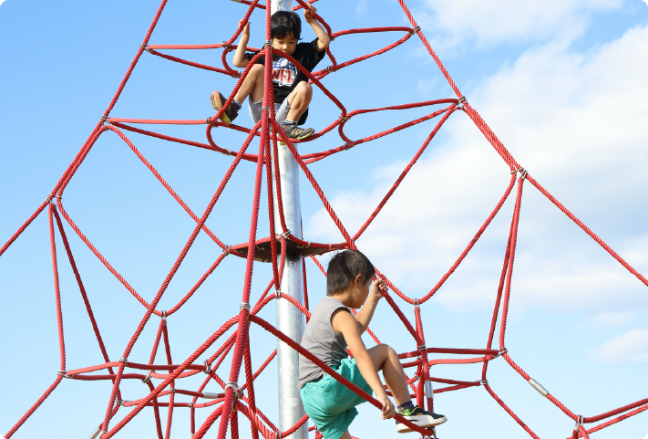 遊具の安全に関する規準(JPFA-SP-S:2014)は都市公園の遊具をはじめ、保育所、幼稚園、小学校、児童館、その他の公共の遊び場や広場の遊具が対象となっております。安全で丈夫な遊具を提供することを最優先に考え、部材の耐久性・安全性も考慮した素材の選定にも力を入れています。