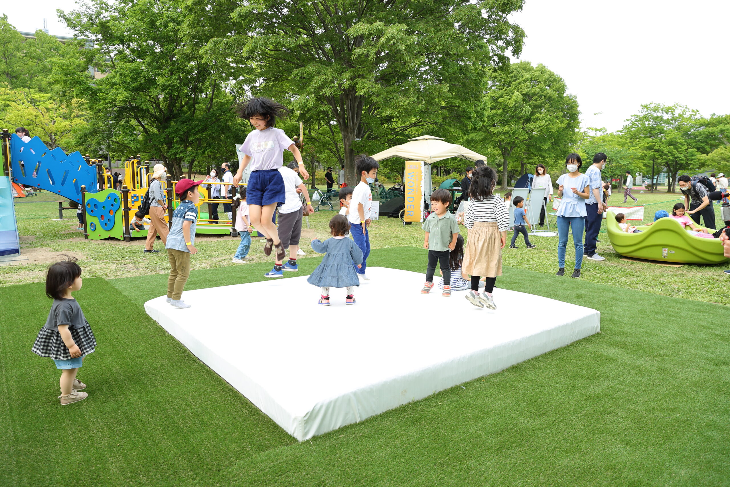 跳んだ圧力が周囲に影響しないので、みんなが同時に、自在に遊ぶことができます。「揺れる」「跳ねる」という動きは多くの子どもが大好きな遊びです。一人での運動が苦手な子も、それぞれの自分らしい遊び方や周りのサポートで一緒に無理なく跳躍運動が楽しめます。
