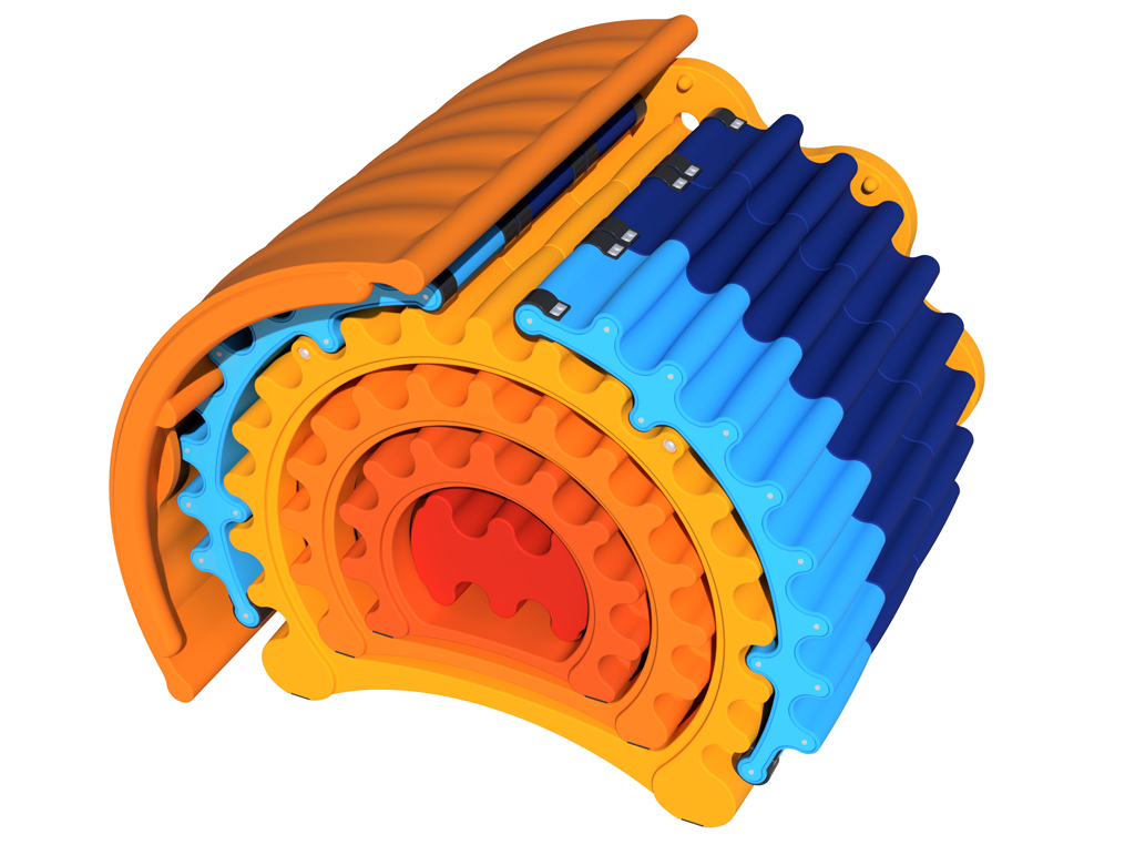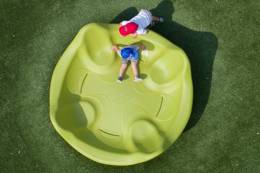 3〜4人で入れる程よい狭さのドームです。賑やかな遊び場から逃れたり、1人や少人数でゆっくりと過ごせるスペースになります。開口部は中の様子を確認できるとともに、足掛かりにしてドームの上へ登ることもできます。